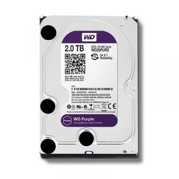 HDD 2 TB, WD20PURZ SATA-6Gb, IntelliPower 5400 rpm, 64 MB PURPLE